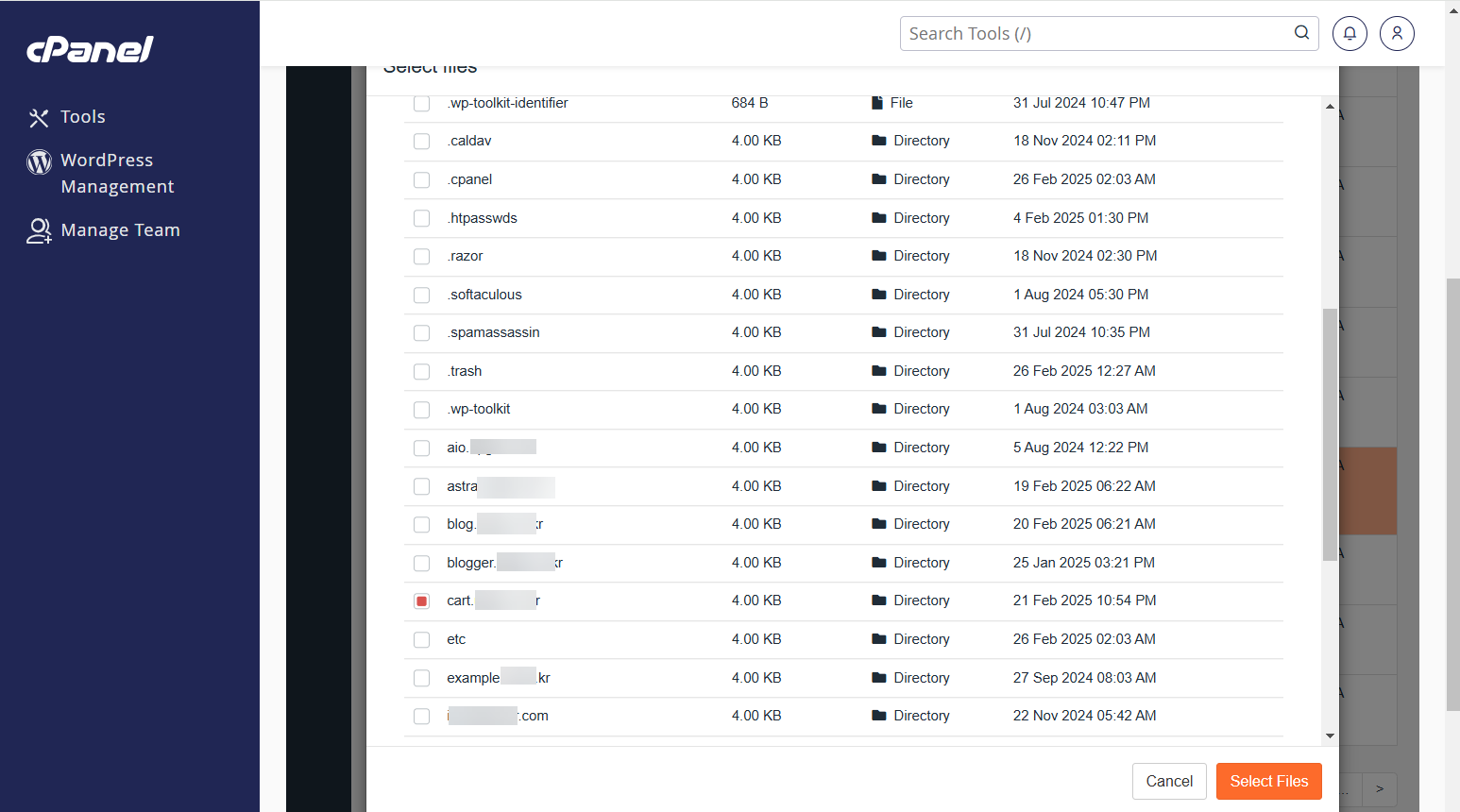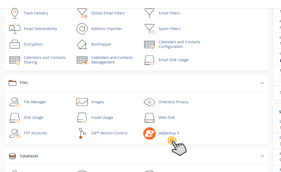 또는, Files » JetBackup 5 툴을 선택합니다.