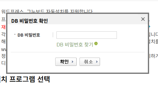 설치하기 버튼을 누르면 DB 비밀번호 확인 팝업이 표시됩니다. DB 패스워드를 입력한 후에 확인 버튼을 클릭합니다.