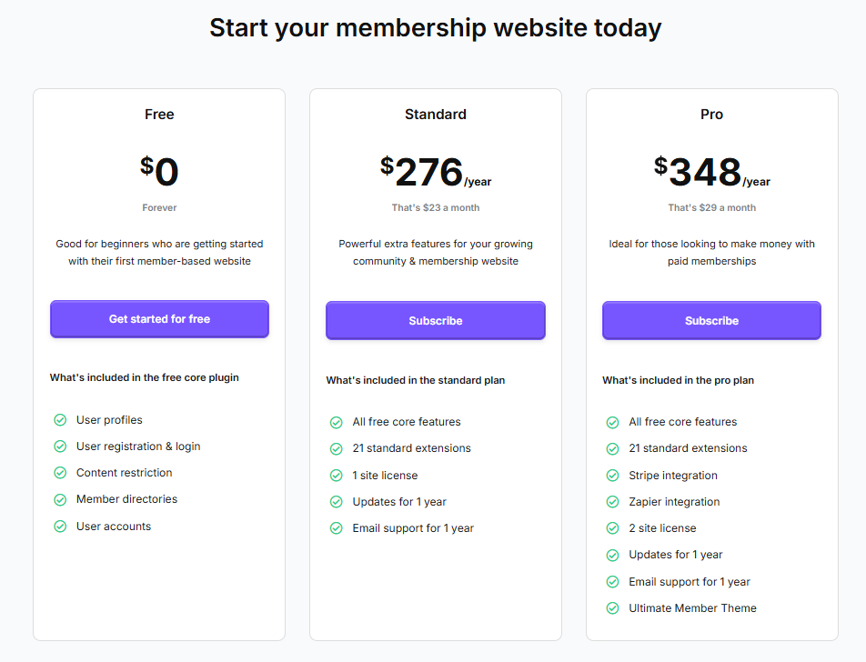 정교한 회원제 사이트를 만들려는 경우 무료 멤버십 플러그인인 Ultimate Member를 사용할 수 있습니다. 얼티밋 멤버는 무료이지만, 기능을 확장하고 싶은 경우 유료 요금제를 사용할 수 있습니다.