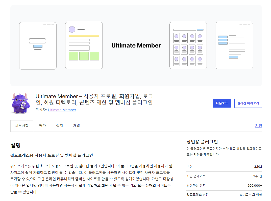 Ultimate Member는 현재 20만 개가 넘는 사이트에 설치되어 사용되고 있어 6만 개 이상의 사이트에 설치되어 사용 중인 WP-Members에 비해 인기를 끌고 있습니다.