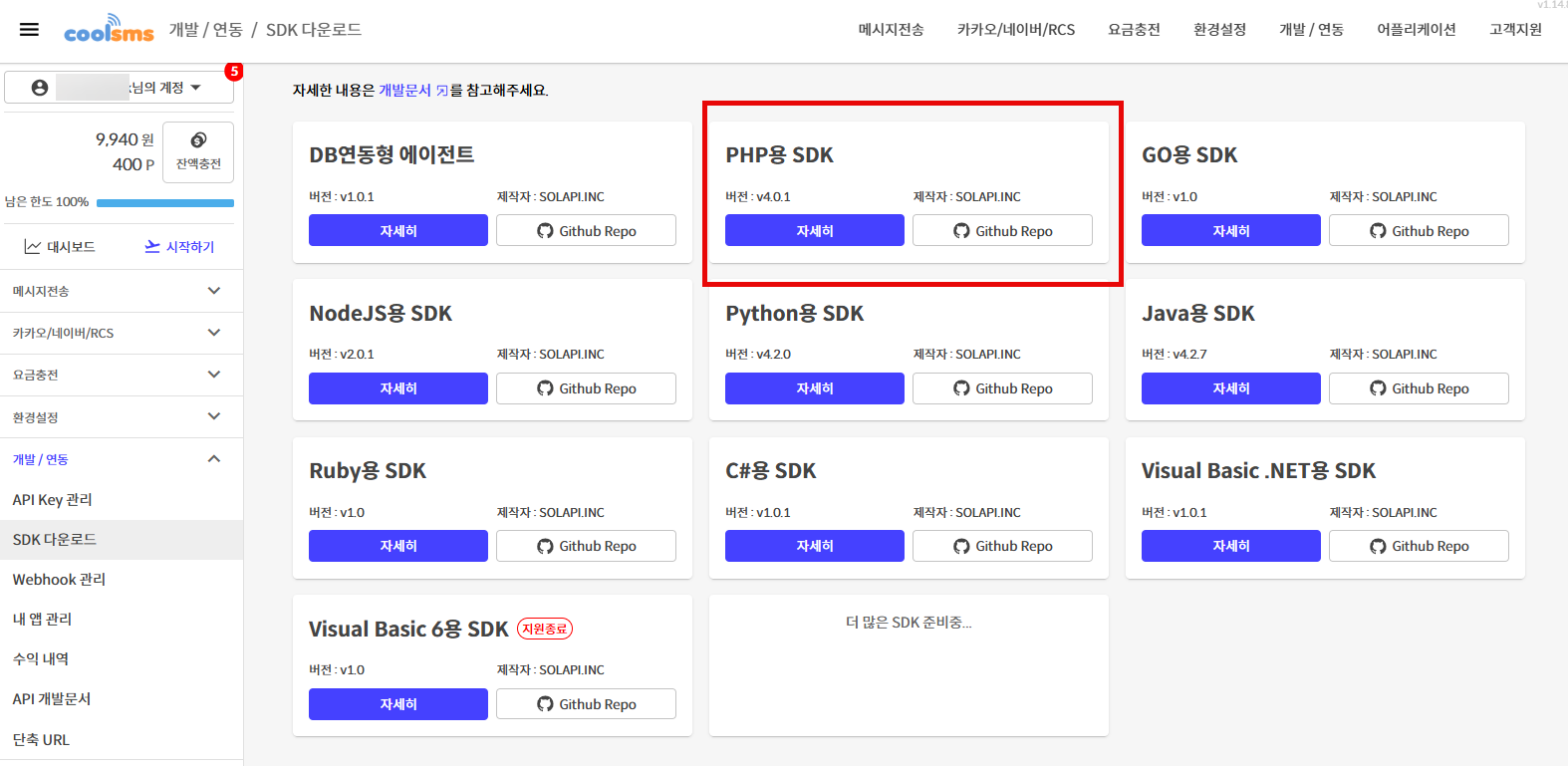 다른 방법으로 CoolSMS와 같은 서비스에 가입하고 워드프레스와 연동 작업을 하는 것도 생각해 볼 수 있습니다. CoolSMS는 친절한(?) 개발자 문서를 제공하므로 개발자 문서를 참고하여 연동을 시도해 볼 수 있습니다.