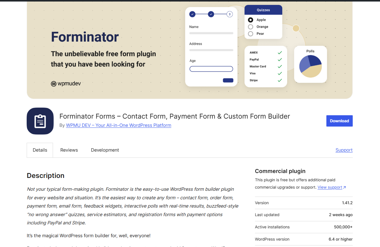 워드프레스에는 다양한 문의 폼 플러그인이 있습니다. Forminator는 Contact Form 7이나 WPForms 등에 비해 인지도가 낮지만 50만 개가 넘는 사이트에 설치되어 사용되고 있는 인기 컨택트 폼 플러그인 중 하나입니다.