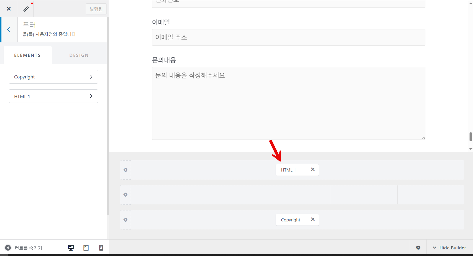 아래와 같이 HTML 코드로 양식을 바닥글 영역에 추가할 수 있습니다.