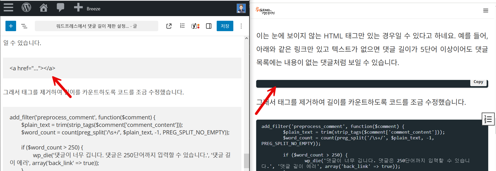 Breeze는 최근 업데이트 후에 워드프레스 블록 에디터의 코드 블록이 제대로 작동하지 않는 문제가 발생했습니다.