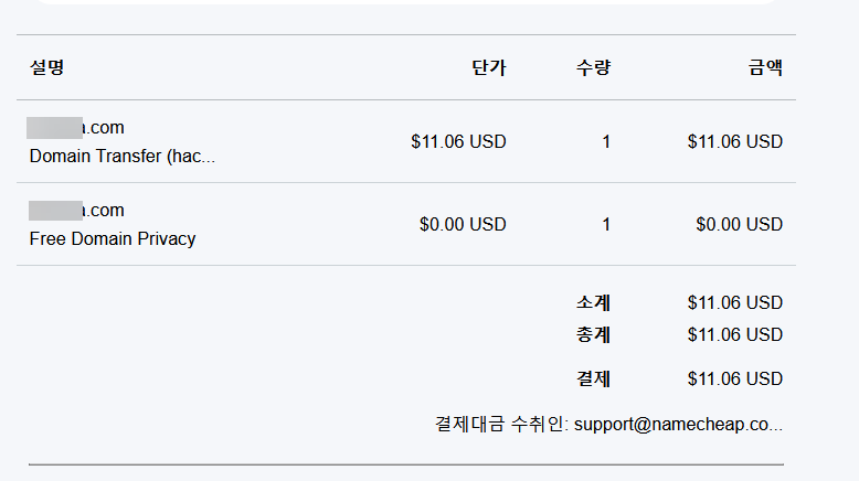 - 새로운 도메인 등록업체(예: Namecheap)에서 1년간 연장(결제)하면서 기관이전을 요청합니다.