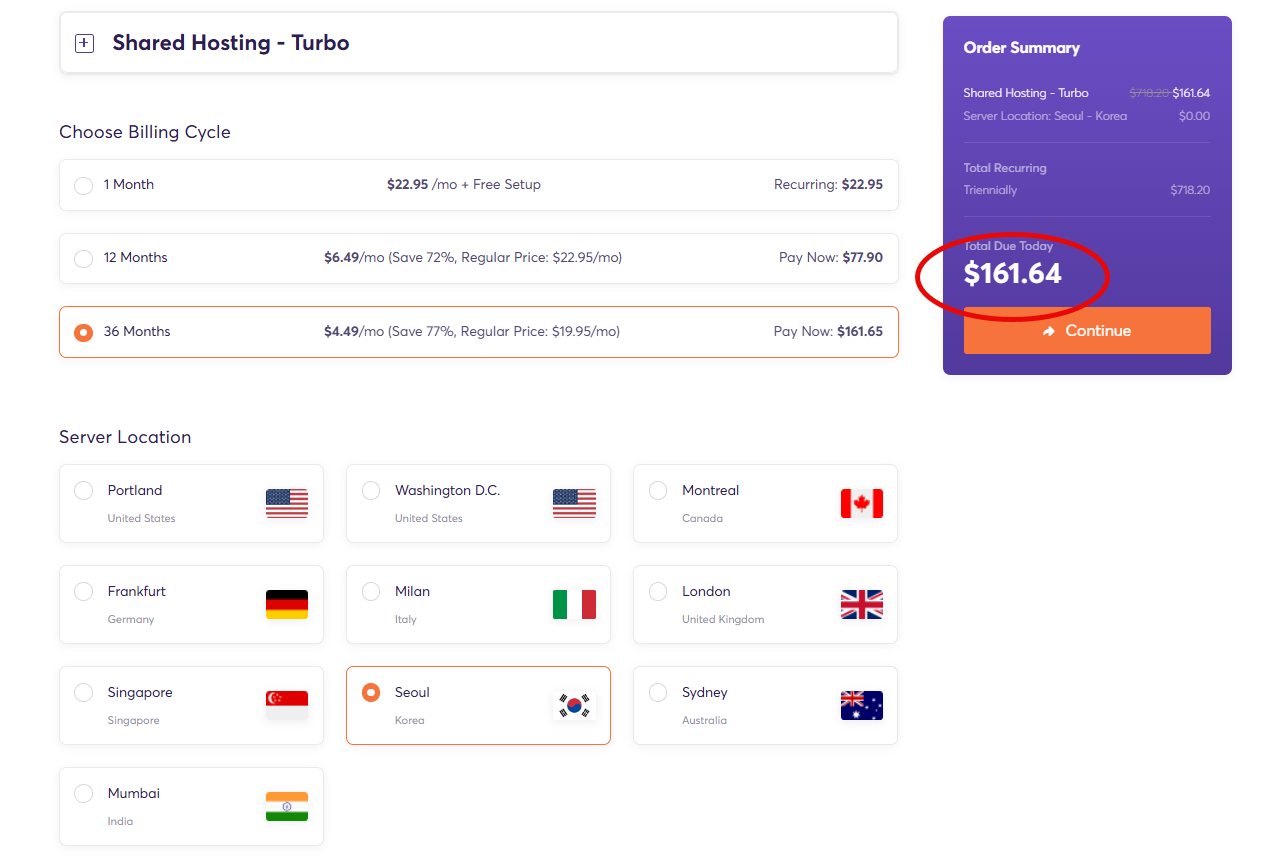 WordPress Turbo 상품의 경우 3년 약정 시 161.64달러에 이용이 가능하며, 3년 후에 갱신하려면 710달러 정도로 인상됩니다. (마찬가지로 갱신하는 것이 부담스럽다면 새로운 계정을 하나 파서 재가입하거나 클라우드웨이즈와 같은 호스팅으로 이전할 수 있습니다.)