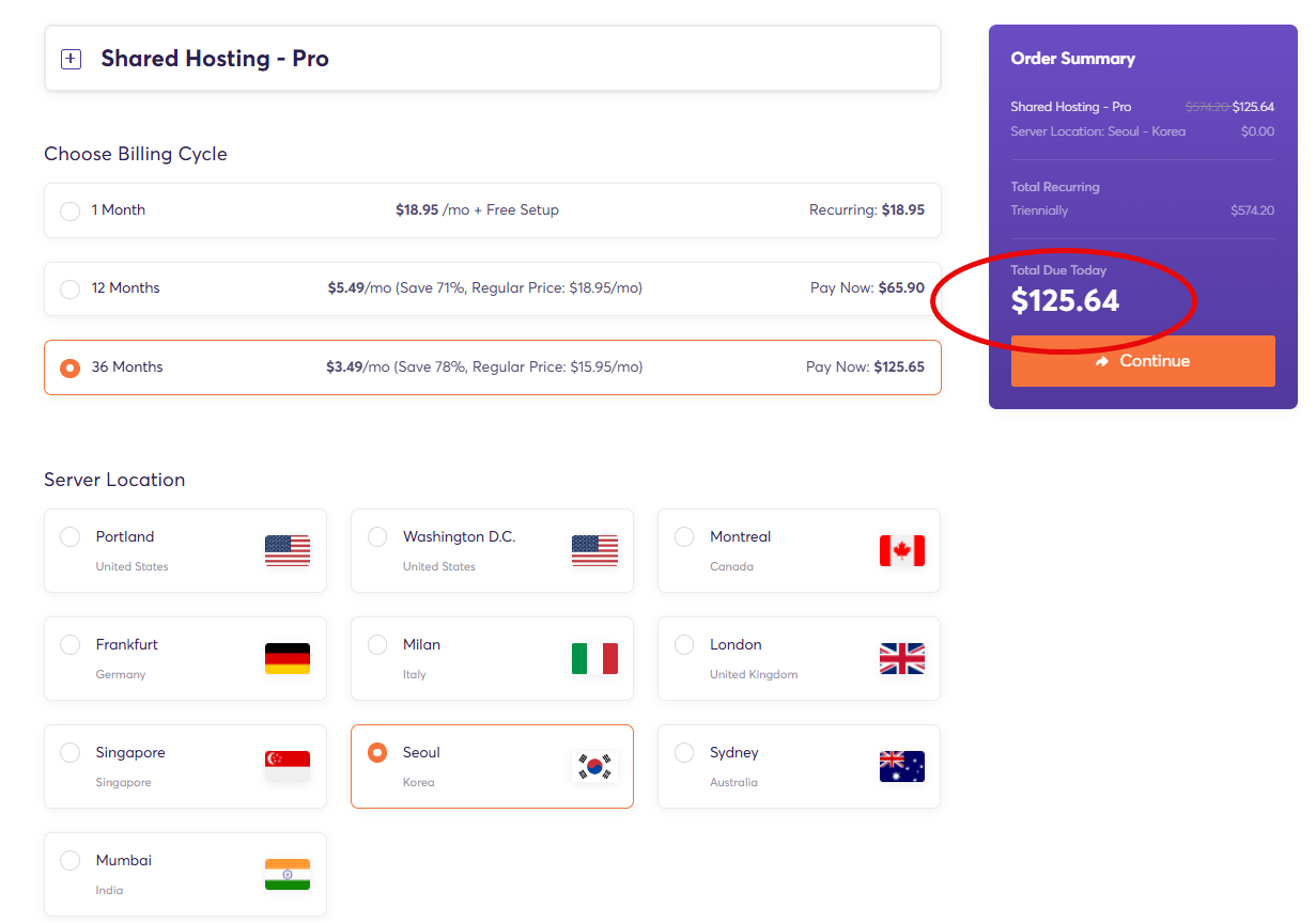 가입 시 서울(Seoul) 서버 지역을 반드시 선택하시기 바랍니다. 블루호스트는 미국 서버만 제공되기 때문에 우리나라에서 속도가 느리다는 불만이 많고, 패스트코멧은 도쿄 서버를 선택하면 우리나라에서 속도가 조금 괜찮게 나오지만, 케미클라우드에 비해서는 느린 편입니다.