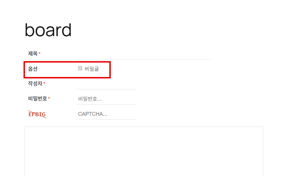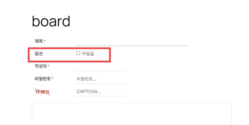 두 옵션을 모두 활성화하면 그림과 같이 비밀글 옵션이 기본적으로 선택되고 사용자가 이를 변경할 수 없습니다.