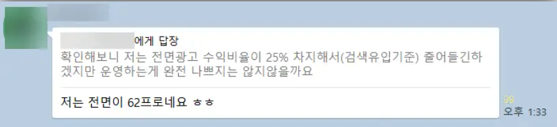 사이트마다 차이가 있을 수 있지만 모바일 전면광고를 전면 금지할 경우 상당한 수익 감소는 불가피할 것으로 보입니다.
