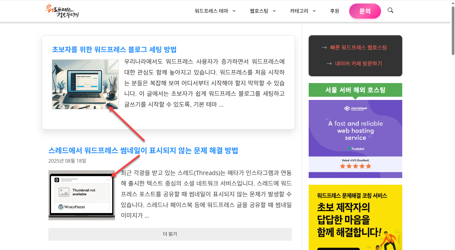 워드프레스 대표 이미지 (특성 이미지) 설정 방법