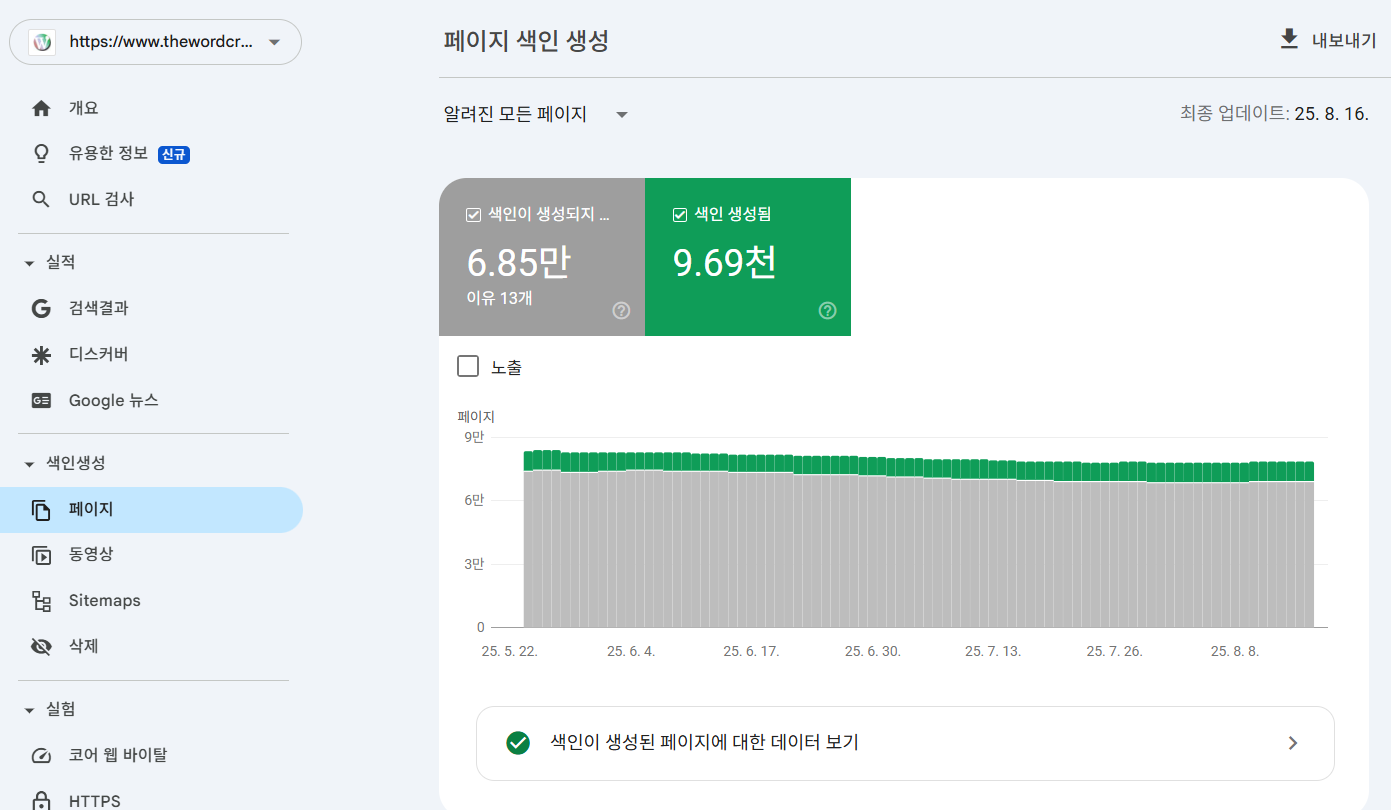 색인 생성이 안 되는 페이지가 많은 것으로 표시되는 것도 문제가 아니므로 무시할 수 있습니다. 제 워드프레스 블로그는 색인이 생성되지 않는 페이지 수가 68,500개에 달합니다.😄