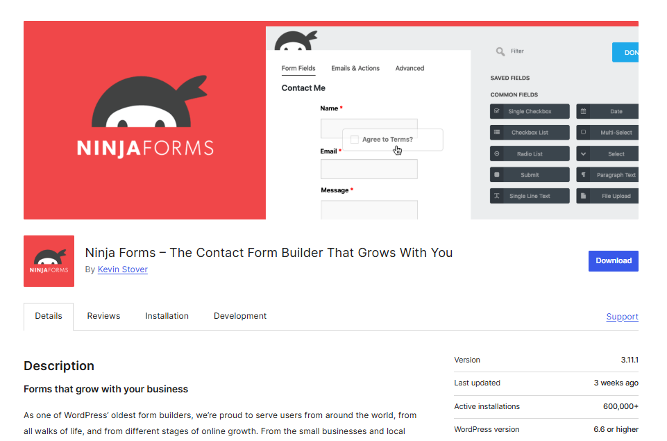 WPForms의 대안으로 Ninja Forms 플러그인을 고려할 수 있습니다. 이 플러그인은 60만 개가 넘는 워드프레스 사이트에 설치되어 사용되고 있습니다.