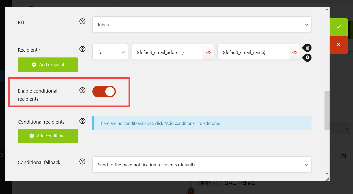 Quform은 조건에 따라 다른 수신자를 설정하는 기능이 기본적으로 제공됩니다.