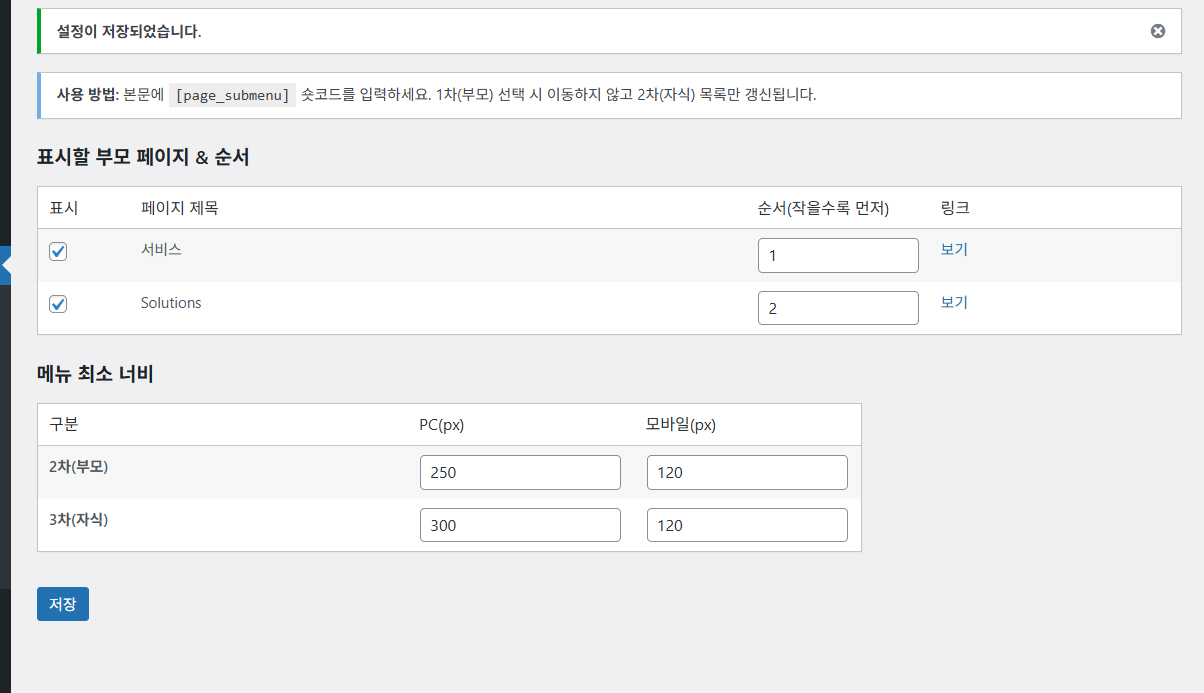 이 때문에 이 문제를 해결하도록 코딩을 새롭게 하여 플러그인을 만들어게 되었습니다. 영어 버전에서는 메뉴 최소 너비를 늘리고 모바일에서는 2줄로 표시되도록 하는 등 기능을 추가했습니다.😄