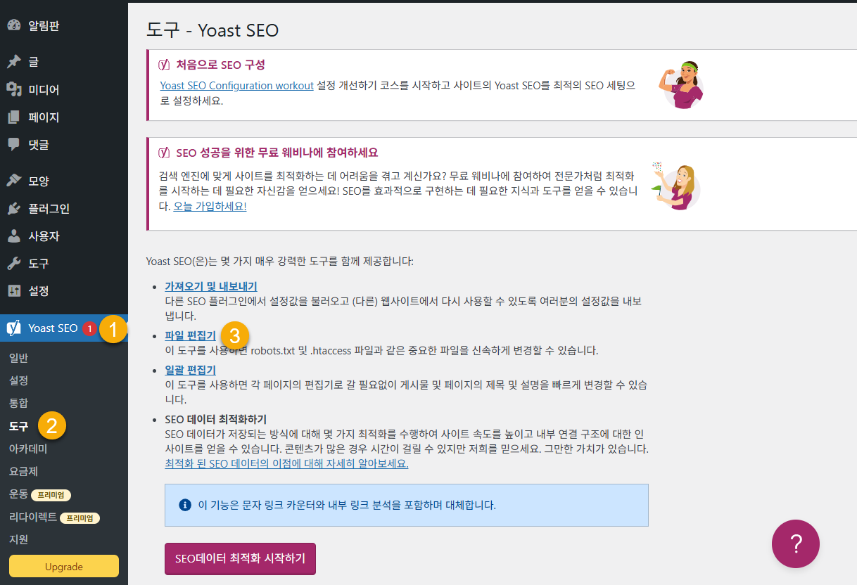 워드프레스 Yoast SEO에서 Robots.txt 파일 편집하기