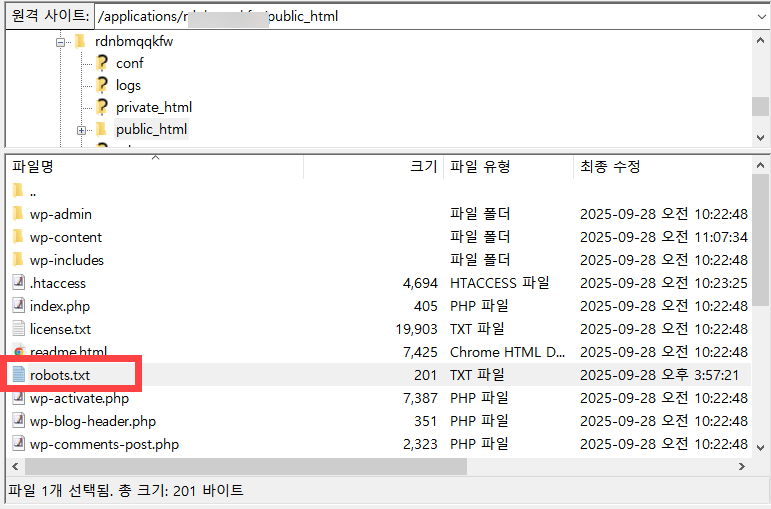 참고로 이 기능을 사용하여 robots.tx 파일을 만들면 사이트의 루트 폴더에 robots.txt 파일이 생성됩니다.