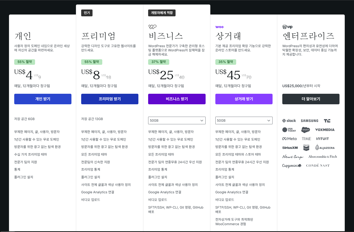 가입형 워드프레스는 요금제에 따라 제약이 많았지만, 이제 개인/프리미엄 요금제에서도 플러그인 설치가 가능하므로 플러그인으로 어느 정도 제약을 극복할 수 있을 것 같습니다.