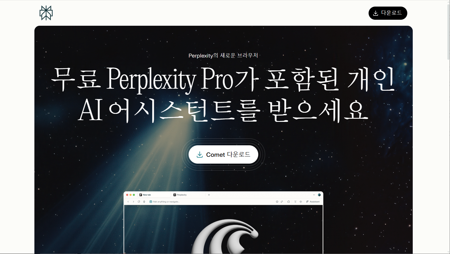 Comet을 설치하고 Perplexity Pro를 1개월 무료로 이용하려는 경우 다음 초청 링크를 클릭하여 Comet 브라우저를 다운로드하여 설치하면 됩니다.