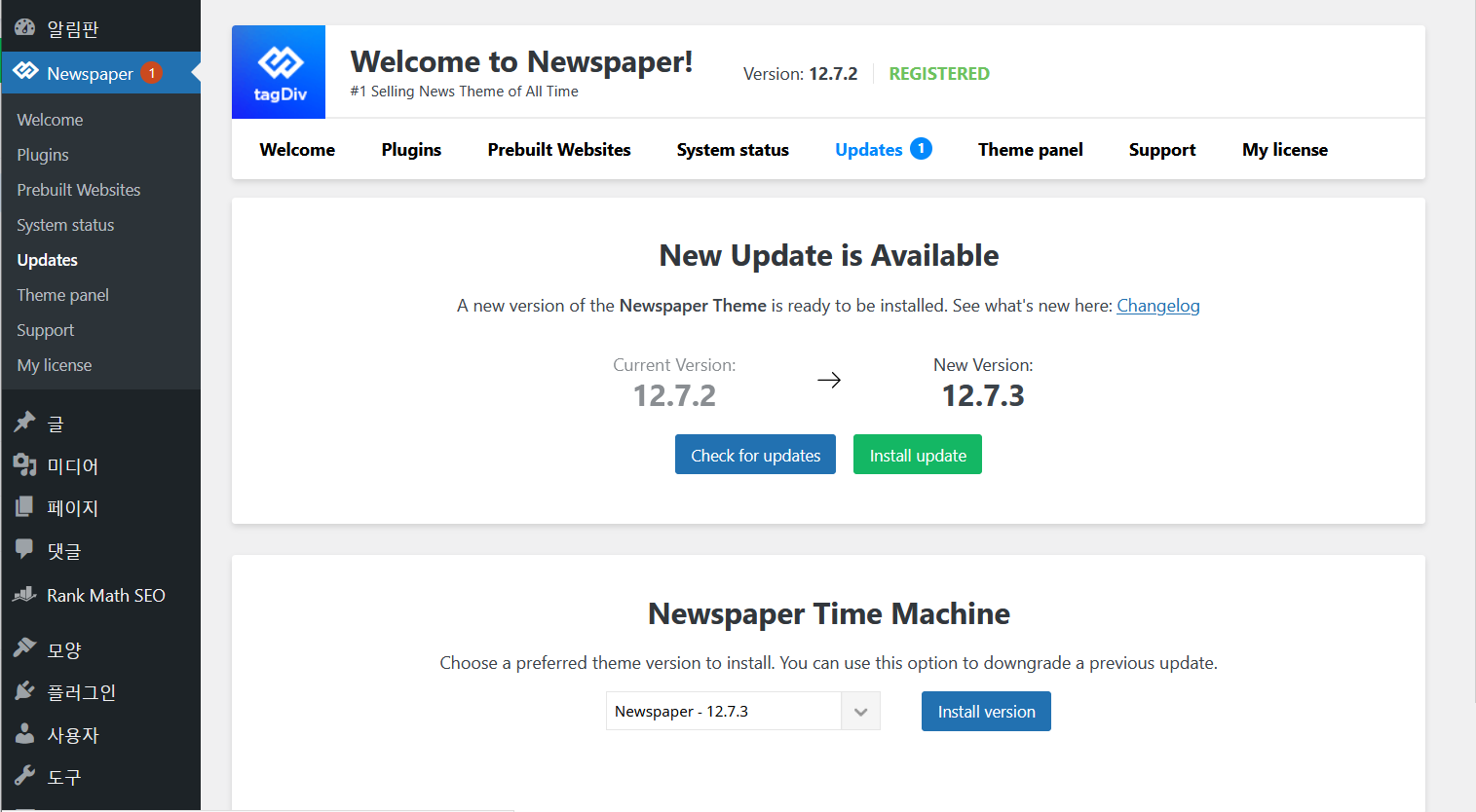 뉴스페이퍼 테마를 사용하고 있다면 Newspaper » Updates에서 최신 업데이트를 확인하여 업데이트를 설치할 수 있습니다.
