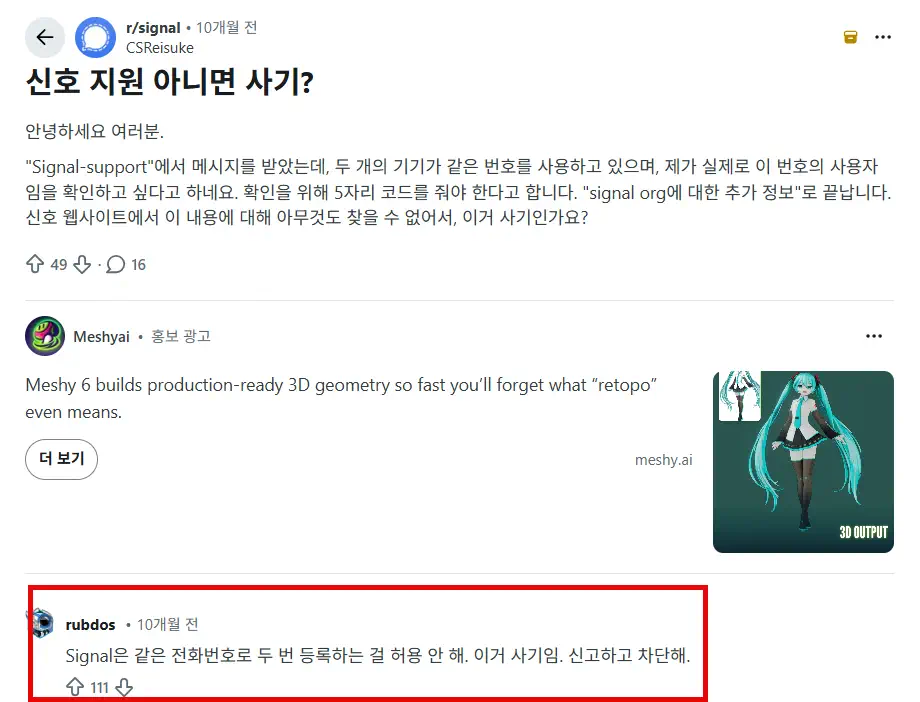 다행히 답장을 해도 곧바로 인증코드가 오지 않아서, 피해를 입지 않았습니다. 인증코드가 오기 전에 구글링 해보니 Reddit에 이와 관련된 글이 있네요.😊