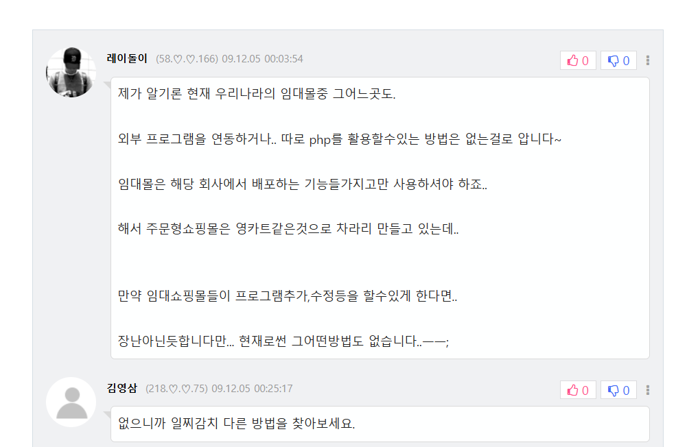 PHP 지원에 대해 검색해 보니 우리나라 임대몰 중에서 PHP를 활용할 수 없는 것은 없다고 하네요.