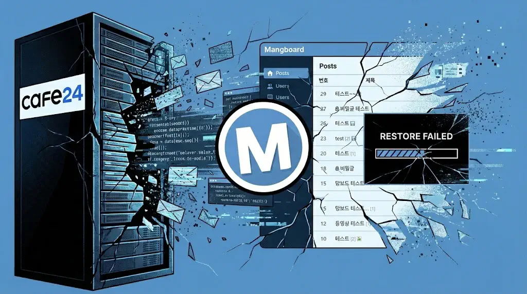 아마 사이트는 오랫동안 업데이트를 하지 않고 망보드 게시판에만 글을 올린 것 같습니다. 문제는 호스팅 데이터를 복구하면서 망보드 데이터가 모두 사라지는 현상이 발생했습니다.