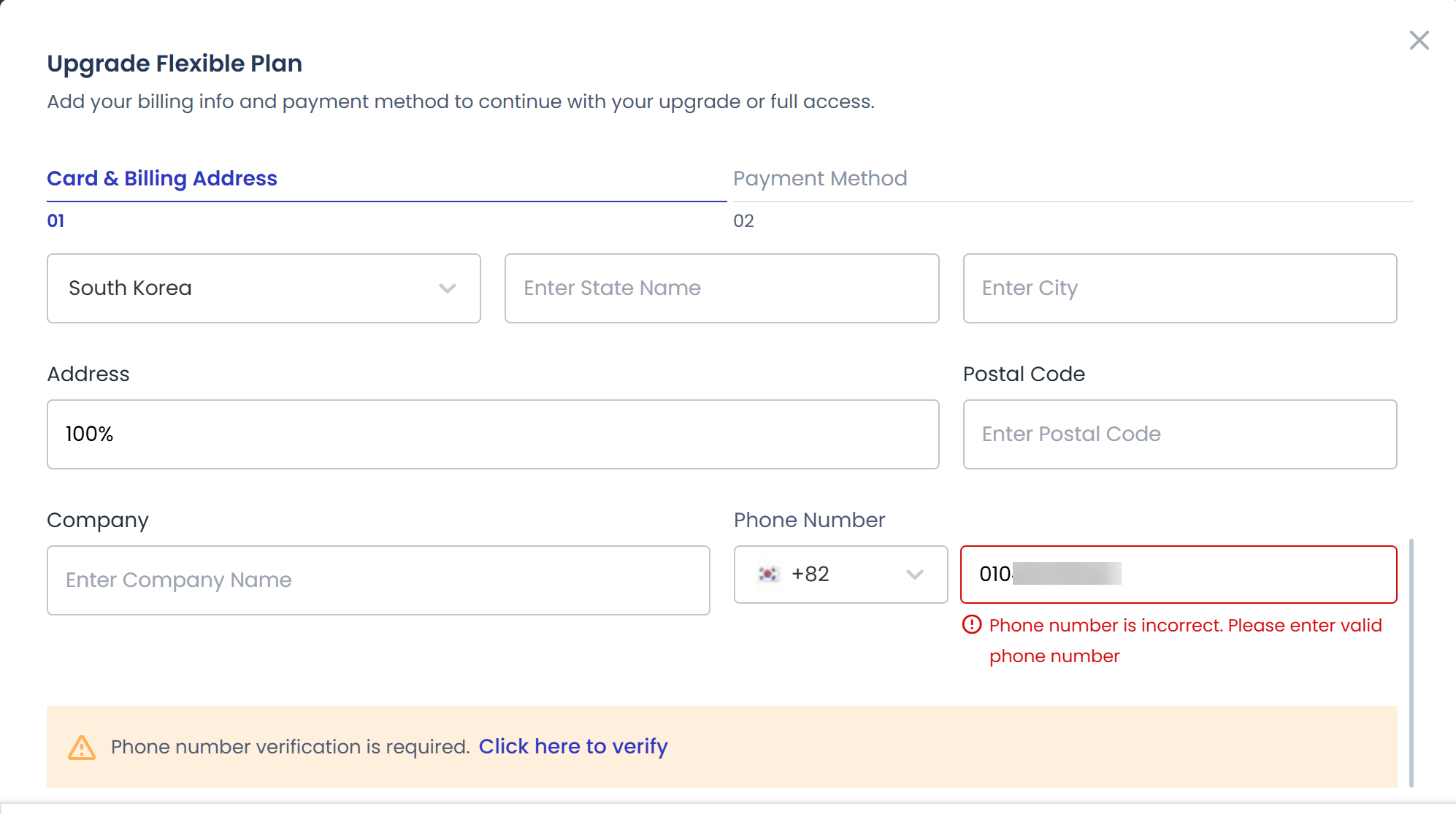 또한, 가입 시나 계정 업그레이드 시 "Phone number is inccorrect. Please enter valid phone number" 오류가 표시되면서 아무리 해도 전화번호(핸드폰 번호) 인증이 안 되는 문제가 드물지만 발생할 수 있습니다.