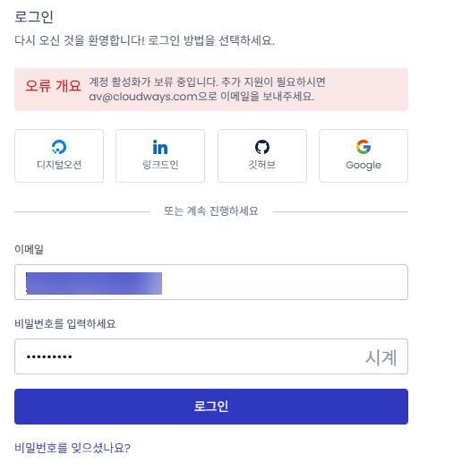 Cloudways에 가입한 후에 로그인을 시도할 때 계정이 비활성화되면서 로그인이 되지 않는 상황이 종종 발생합니다.