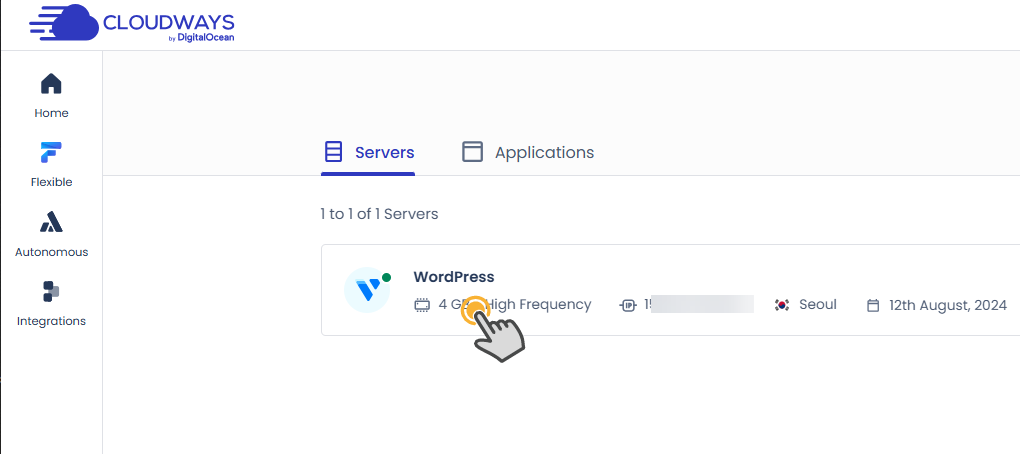 클라우드웨이즈에서 내 서버를 클릭합니다.