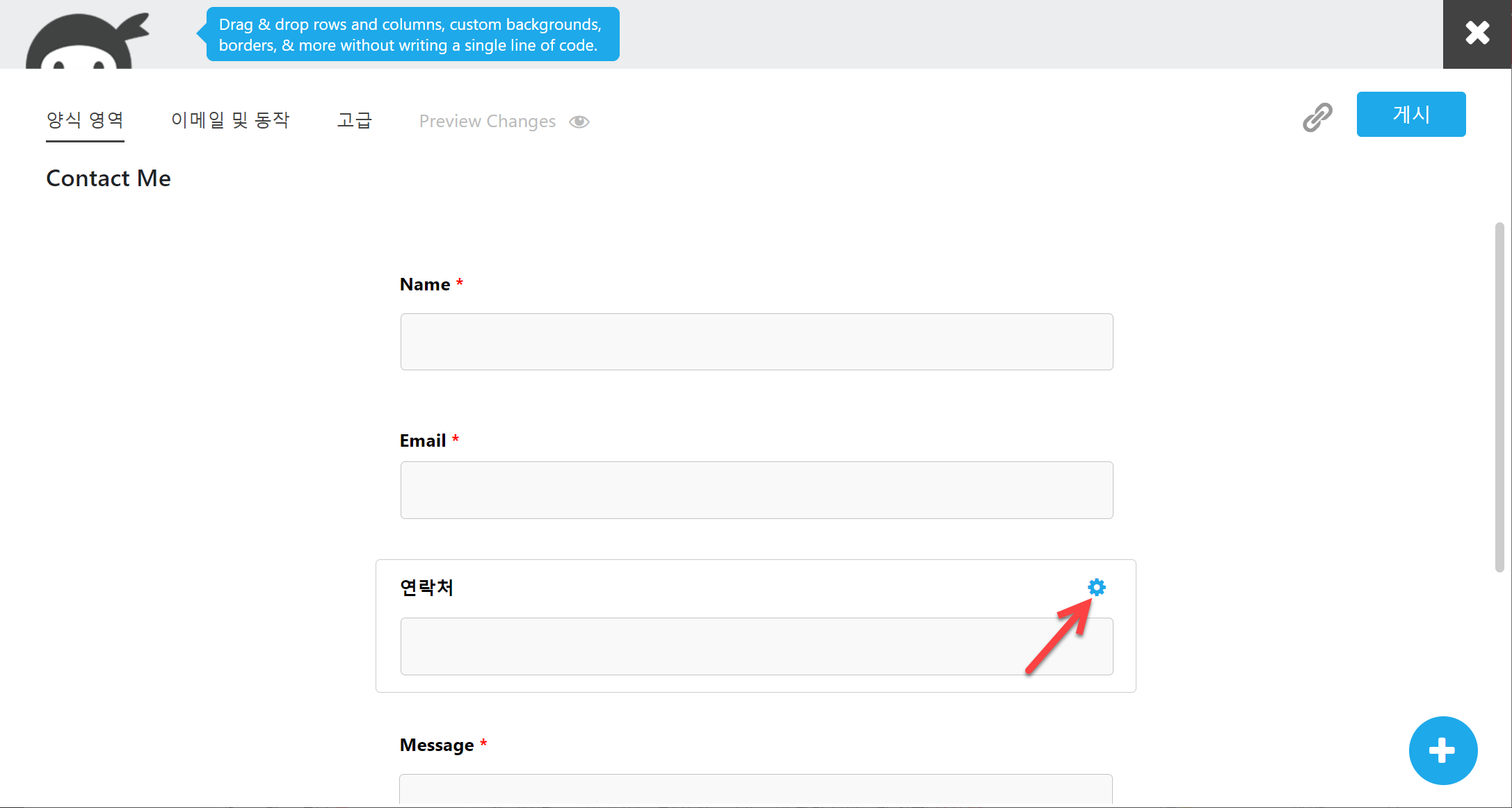 Ninja Forms 문의폼 플러그인에서는 다양한 필드를 지원합니다.