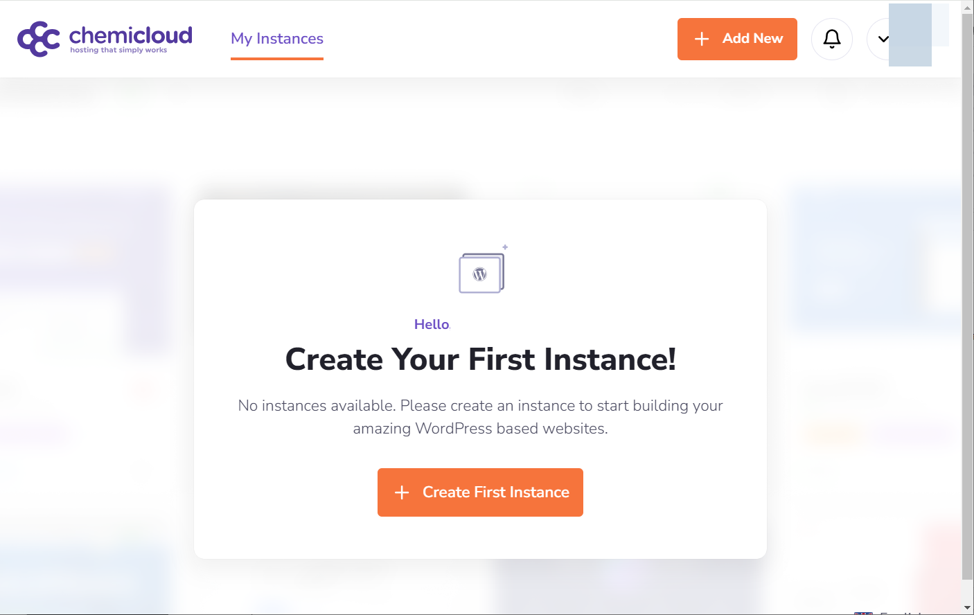 처음 접속하면 Create Your First Instance! (첫 번째 인스턴스 만들기) 화면이 표시됩니다.